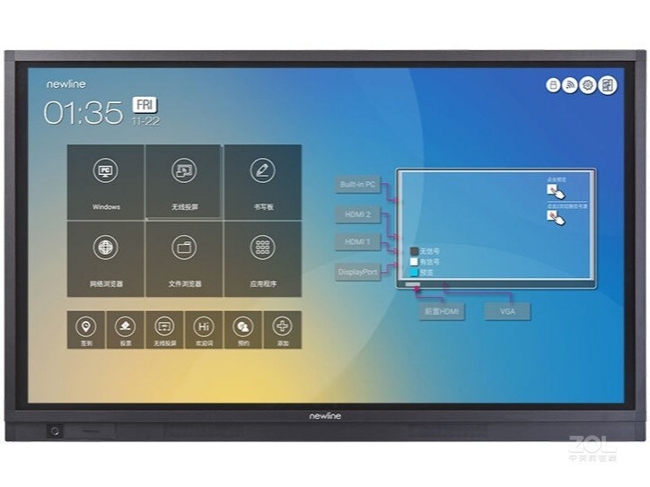 newline TT-6519RS智能會議平板機(jī)身沒有太多華麗炫酷的外表,更多的是一份簡潔與大氣,能夠適配與各種會議室環(huán)境。前面板為純黑配色,同時窄邊框的設(shè)計讓畫面顯示面積更大,參會者在觀看時能夠擁更好的觀看體驗。
